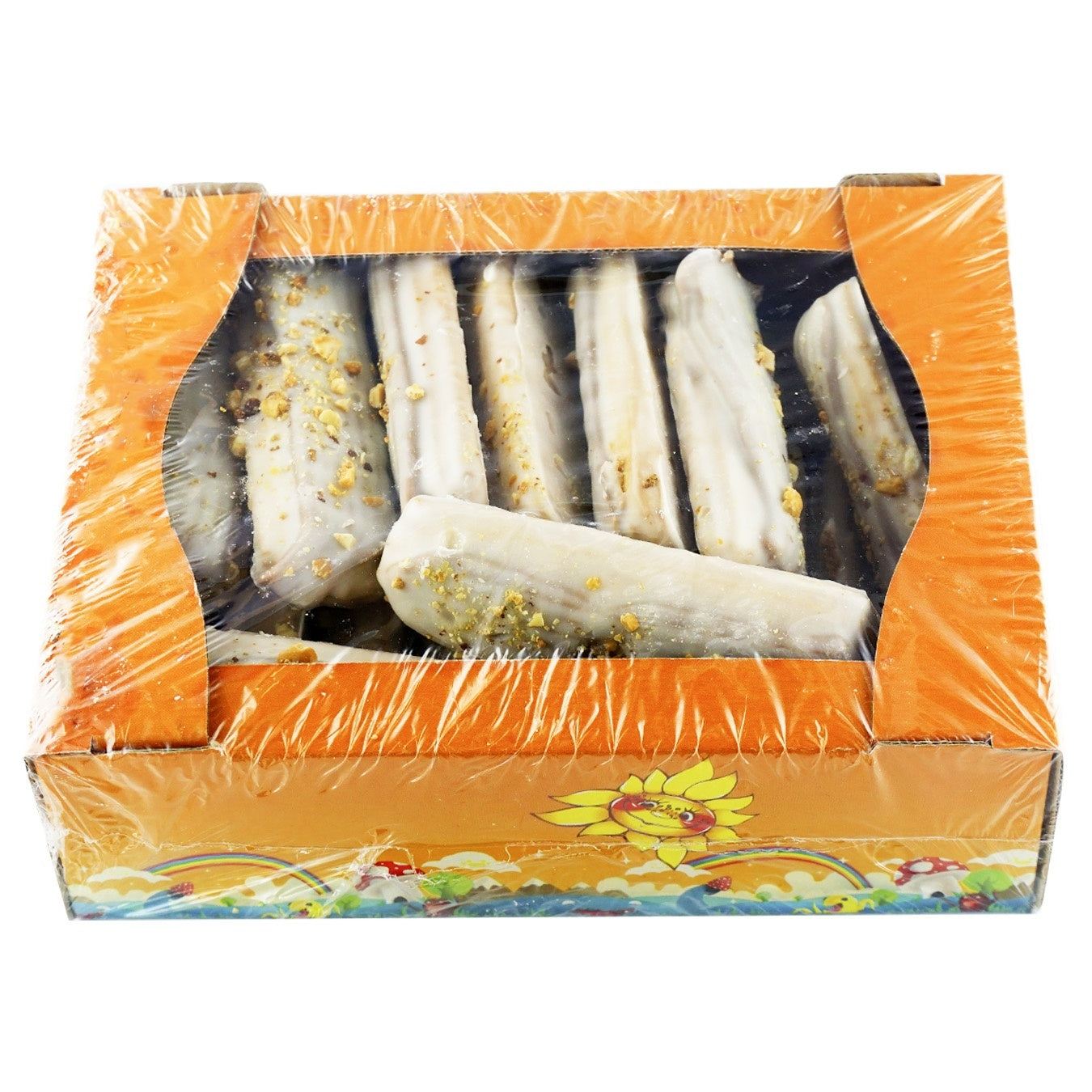 Мадлен Біла Рядинська - це популярне здобне печиво у формі мушлі (гребінця), виробництва бренду «Рядинська», яке вкрите білою глазур'ю